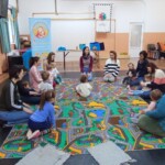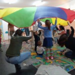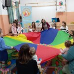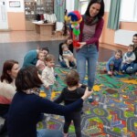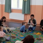 Tavaszi mondókák, énekek várták a Kerekítő foglalkozásra érkező csemetéket Adán, a Vadvirág Hagyományápoló Körben. A foglalkozás kezdetén kékruhás, zöldruhás buborékok varázsolták el az apróságokat. Kerekítő manóra sem kellett sokáig várnunk, hisz már alig várta, hogy csatlakozhasson a játékhoz. Ezt követően minden kisgyermek tenyerében kerekedett egy kis kút, amiből ihatott a kisnyulacska. Lovagoltattunk, höcögtettünk, tenyeresdiztünk, hintáztattunk és a közelgő ünnepre hangolódtunk.