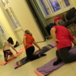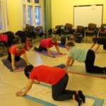 Március 25-én, hétfőn ismét összegyűlt a lelkes csapat, hogy részt vegyen az Egészséges gerinctréning elnevezésű foglalkozáson. A szokásos, a továbbiakhoz elengedhetetlen bemelegítés után el is kezdődhetett a jóga és pilates mozdulatait alapul vevő gerinctorna. A résztvevők nagy odafigyeléssel, precízen végezték a különféle mozdulatsorokat, ezzel is elősegítve gerincük egészségének megőrzését, állóképességük javítását, így egész szervezetük jóllétét is.
