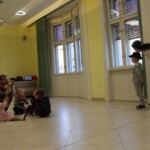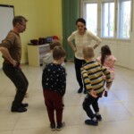 Tavaszi hangulatban zajlott március 25-én a Hej tedd rá, most tedd rá! nevet viselő néptáncos foglalkozás. A bemelegítő kör után a dunántúli ugrós tánclépéseinek gyakorlása következett a népzene dallamaira, majd kis pihenő közben húsvéti témájú találós kérdéseket fejthettek meg a gyerekek. A közelgő ünnepet idéző húsvéti versike tanulása után ismét a táncé volt a főszerep: a már jól ismert lépéseket járhatták el a kicsik, vidám játékkal téve érdekesebbé a gyakorlást.
