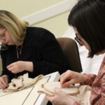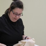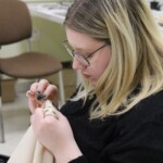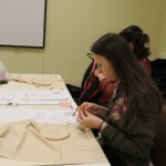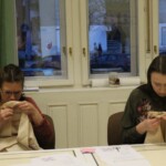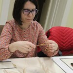 A hímzőszakkör tagjai gyűltek össze március 26-án, hogy folytassák e szép kézimunkafajta hagyományának ápolását. Az előző alkalommal a párnahuzatra előrajzolt mezőberényi szűcshímzés motívumát kezdthették el hímezni a résztvevők. Ezt megelőzően megtekinthették az ehhez a művelethez kapcsolódó oktatóvideót, megismerkedhettek az olyan alapvető öltésfajtákkal, mint a laposöltés, a ferde laposöltés és a száröltés, majd következhetett a nagy odafigyelést igénylő munka, amit jövő héten folytat a csoport.