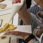 A Szakkör foglalkozás-sorozat szerdai alkalmán a mézeskalács-készítő szekció tagjai töltöttek együtt egy kellemes délutánt. Ezúttal is szép és érdekes feladat várta őket: madarak díszítése volt a program, amihez az írókázás technikáját használták. Most is, mint minden alkalommal, újdonság is várta a résztvevőket: a madárkák szárnyai külön is rásüthetők a formára, így térbeli hatást érhetünk el a sütés során. Ezen a napon is gyönyörű díszítéseket kaptak a sütemények, amelyekre méltán lehetnek büszkék alkotóik.