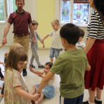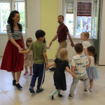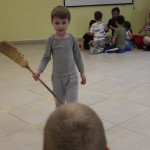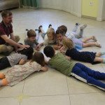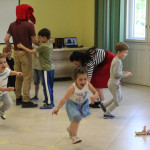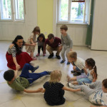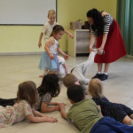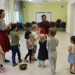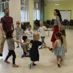 Hétfőn a Hej tedd rá, most tedd rá! néptáncos foglalkozásra vártuk az érdeklődő gyerekeket. Játékok és tánc váltotta egymást ezen a vidám délutánon. Előkerültek a közkedvelt népi gyermekjátékok, diót csörgettünk, majd törtünk, kihúztuk a répácskákat a földből, de az öreg csősz is megkergette a kis szőlőtolvajokat. A táncrendben a dunántúli ugrós lépéseit gyakorolták a táncosok nagy buzgalommal, befejezésképpen pedig a Kútba estem kezdetű játékkal zárták a foglalkozást.