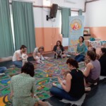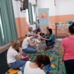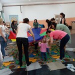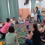 Legutóbb Adán mókázhattunk Kerekítő manóval, aki színes buborékokkal kápráztatta el pajtásait. Közös énekléssel köszöntötték egymást, majd sorra kerültek elő a patkoltatók, lovagoltatók, höcögtetők, tapsoltatók. A szivárványszínű ejtőernyős rész alkalmával mindenki jókat kukucskált, majd megfőztük a kicsi gombócokat. Ezt követően útrakeltünk és kipróbáltuk milyen, amikor a poros úton kocsi zörög.