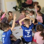 Ismerkedéssel, barátkozással, új kispajtások megismerésével kezdődött a Kézen Fogva – Fejlesztőkuckó április 27-i alkalma. Ezúttal a Föld napja köré épültek a gyakorlatok, amely április 22-én volt. Ezen a délelőttön a koncentráció és a nagymozgások fejlesztésén volt a hangsúly. Egy puzzle kirakásával és színezésével kezdődött a feladatok sora, ami után egy mese következett bolygónkról és a kisgyermekekről. A téma megbeszélése után ügyességi feladatok jöttek sorra, majd a koncentrációkészség fejlesztése. A környezetvédelemről és a szelektív hulladékgyűjtésről is beszélgettek a kuckólakók. A délelőttöt a finommotoros készségek fejlesztése zárta kézműves foglalkozás keretében.