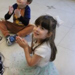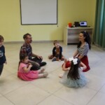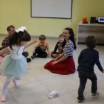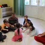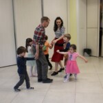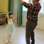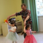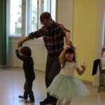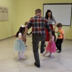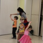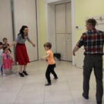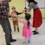 Vidáman töltötték a hétfő délutánt a hozzánk látogató kisgyermekek a Hej tedd rá, most tedd rá! foglalkozáson. Népi gyermekjátékokkal hangolódtak rá a foglalkozásra. A Gyűrű, gyűrű és a Héja, héja vaslapát kezdetű mondókákkal kísért kör- és fogójátékok után a tánclépések szorglamas gyakorlása következett. Ezúttal moldvai dallamok csendültek fel a teremben, majd a dunántúli ugróst járhatták el a kis néptáncosok. Az óra befejező szakaszában ismét az önfeledt mókáé volt a főszerep: a gyerekek legkedveltebb játékaival búcsúztak egymástól.