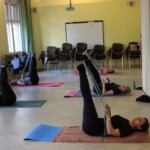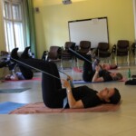 Rövid szünet után újult erővel vágtak bele a résztvevők a tornába a szerdai Egészséges gerinctréning nevet viselő foglalkozáson. A szokásos módon az elengedhetetlen bemelegítéssel kezdett a csoport, majd következhettek a gerincoszlopot, illetve az egész test izmait átmozgató és erősítő gyakorlatok. Ezúttal frissült a mozgássorok repertoárja, ugyanis új segédeszközzel, méghozzá erősítő gumiszalag segítségével dolgozhattak a tagok. Az újdonság még nagyobb lendületet, igyekezetet adott az egyébként is lelkiismeretesen, szorgosan edző csapatnak.