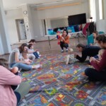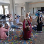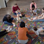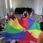 Kedden Moholon vidította fel az apróságokat Kerekítő manó. Közös énekléssel üdvözölték egymást, majd előkerültek a legkedveltebb mondókák. Sorra jöttek a dalocskák, höcögtetők és lovagoltatók is. Kerekítő manó segítségével tenyeresdit is játszottunk, azután vígan szálltak a színes labdák a magasba, miközben nevetve kukucskáltunk a tarka ernyő alatt. Várunk Benneteket jövő héten is!
