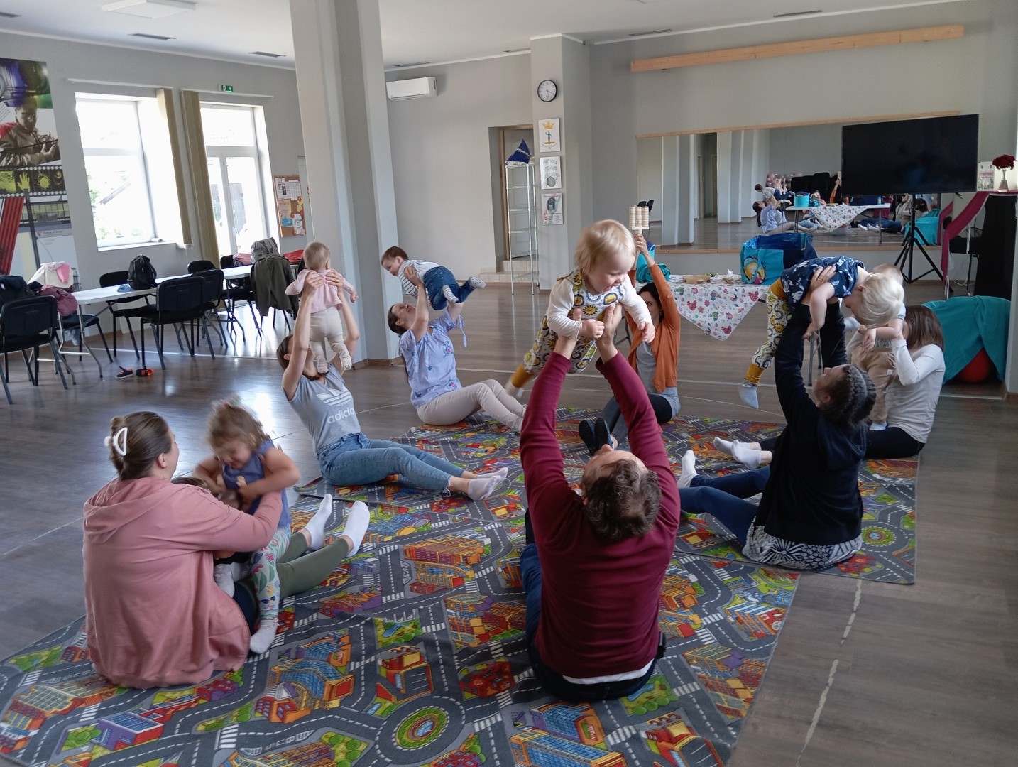 Kedden Moholon vidította fel az apróságokat Kerekítő manó. Közös énekléssel üdvözölték egymást, majd előkerültek a legkedveltebb mondókák. Sorra jöttek a dalocskák, höcögtetők és lovagoltatók is. Kerekítő manó segítségével tenyeresdit is játszottunk, azután vígan szálltak a színes labdák a magasba, miközben nevetve kukucskáltunk a tarka ernyő alatt. Várunk Benneteket jövő héten is!