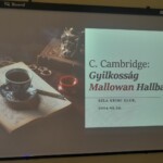Újabb detektívregénnyel vártuk résztvevőinket Krimi Klubunk május 29-ei eseményén, ez alkalommal Colleen Cambridge 2021-es, Gyilkosság Mallowan Hallban című könyvéről esett szó. A kortárs regény az 1930-as évekbeli angol társadalomba nyújt betekintést, cselekménye a Mallowan Hall nevű fiktív helyszínen, Agatha Christie és férje, Max Mallowan vidéki birtokán játszódik. A foglalkozás keretében megosztottuk olvasási élményeinket, egyaránt megtárgyaltuk a könyv izgalmas elemeit és hiányosságait is. A történelmi kontextus és a regény erős női karakterének, Phyllida Bright jellemének kapcsán pedig kitértünk a nők társadalmi szerepvállalásának erősödésére a két világháború közötti időszakban. Könyvklubunk ezúttal is jó hangulatban telt, egyik résztvevőnk nagymamává válását is megünnepeltük: egy gyönyörű mézeskalácsot kapott ajándékba, melyet könyvklubunk ügyes cukrásza készített ? Köszönjük, hogy velünk tartottak! Június 12-én egy skandináv krimivel folytatjuk a nyomozást.