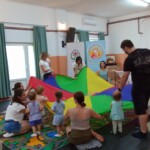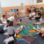Hétfőn vidáman mondókázhattak együtt azok, akik ellátogattak az adai Vadvirág Hagyományápoló Körbe, a nyári szünidő előtti utolsó Kerekítő foglalkozására. Kerekítő manó, miután elénekelte velünk a Kőketáncot, egy hatalmas dinnyeszeletet kóstolgatott jóízűen. Ezt követően sorba kerültek elő az ölbéli játékok széles tárházából a lovagoltatók, csiklandozók, tenyeresdik, tapsoltatók, lógáztatók… Tartalmas, szép nyarat kívánunk minden kedves kerekítős családnak!