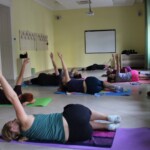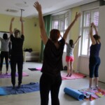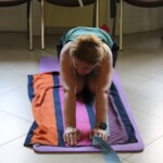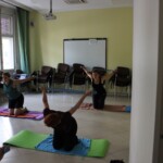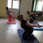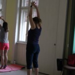 Szerda lévén Egészséges gerinctréning nevet viselő foglalkozásunkra került sor június 19-én is. A csoport tagjai szokás szerint nyújtó- és bemelegítő gyakorlatokkal indította a délutánt. Ezután következett a jóga és a pilates mozgássorain alapuló torna, amely nemcsak a gerinc helyes pozícióját hivatott megőrizni, de kihat az egész test jó kondíciójának fenntartására is. A gyakorlatokat ezúttal is elasztikus gumiszalagok segítségével tették érdekesebbé.