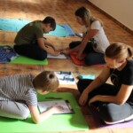 Szombaton, október 12-én szülők és gyermekeik vehettek részt a Minta – gerinciskola – mozogj együtt a gyermekeddel! nevet viselő foglalkozás újabb alkalmán. Beszélgetéssel indítottunk, amely keretén belül közösen átismételtük a gerincről eddig hallottakat, tanultakat, felelevenítettük, mit tudunk annak részeiről, felépítéséről, szerepéről. Ezután következhetett is a gerincoszlopot és az azt tartó izomzatot erősítő tornagyakorlatok egy részének végzése. A folytatásban új ismeretekkel lettek gazdagabbak a gyerekek, hiszen ezen a délelőttön szó esett az emberi izomzatról, működéséről, funkciójáról, amely információkat játékos formában is megerősítettek, elmélyítettek. Gumiszalagok segítségével folytatták a gyakorlatokat a résztvevők, majd a gerinc mozgásformáiról esett szó, ezután pedig visszatértek az izmokról tanultak témájához egy kifestő erejéig. A mozgalmas délelőtt levezető gyakorlatokkal zárult ma is. Köszönjük az együtt töltött időt, várunk vissza mindenkit szombaton!