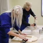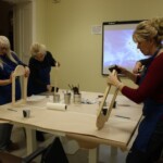 2025. január 22-én, szerdán a bútorfestő szakkör tagjai folytatták munkájukat épületünkben. Izgalmas foglalkozásnak néztek elébe, hiszen a sok gyakorlás után elkezdődött az a folyamat, amire mindenki várt. Ezen a délutánon a Tolna megyei faddi bútorműhely jellegzetes motívumaival díszített tükörkeret festésébe fogtak a szakkörösök. A munkadarab előkészítése és a színkeverés után a keret megkapta az alapszínt, majd mindenki elkészítette a vázlatot, ami alapján a következő alkalommal a díszítést festik meg a résztvevők.