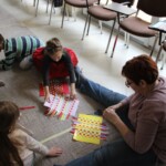 Farsangi időszak lévén eköré épült február 1-jén, szombaton a Kézen Fogva – Fejlesztőkuckó foglalkozás a Szekeres László Alapítvány termében. Vidám, mókás, de egyben hasznos feladatok sora várta a népes gyereksereget ezen a délelőttön is. Tánccal a nagymotoros mozgást fejlesztették, labirintus segítségével a téri irányok helyes használatát gyakorolták, de sor került a finommotorika fejlesztésére is tábla és kréta használatával, írás-előkészítő gyakorlatokkal, illetve a mindenki által igen kedvelt kézműves foglalkozás keretén belül. Szombaton is várunk mindenkit egy újabb jó hangulatú fejlesztő foglalkozásra!