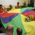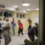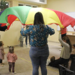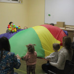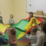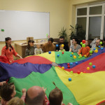 Legkisebb vendégeink február 5-én, szerdán is ellátogattak hozzánk a Szekeres László Alapítványba, hogy szüleikkel együtt eltöltsenek egy vidám, mókával, kacagással teli délutánt a Kiugrott a gombóc nevet viselő foglalkozáson. Röpültek a buborékok, felcsendültek a gyermekek által oly kedvelt dalocskák, szállt a furulya víg hangja, amely hallatán mindenki jókedvre kerekedett, majd egymást követték a lovagoltató és ölbeli játékok. A színes ejtőernyő segítségével a Napocskát hívogatták babák és szüleik, és a gombócokat is kiugrasztották a fazékból. Várunk vissza mindenkit jövő héten!