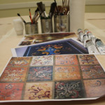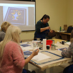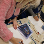 Bútorfestő szakkörünket február 12-én is a megszokott vidám hangulat, de emellett a szorgos munka jellemezte. Ezen a szerdán a dél-dunántúli Baranyába tettünk egy virtuális látogatást, méghozzá a kórósi református templom csodálatos fakazettáit csodálhattuk meg. A szakkörösök közelebbről is megismerkedhettek a jellegzetes ormánsági díszítő motívumokkal, amelyeket későbbi munkájuk során felhasználhatnak. A délután fennmaradó részében a színkeveréssel, a farosttáblák alapozásával és vázlatkészítéssel foglalkoztak, hogy a következő alkalommal belekezdhessenek saját kazettájuk kivitelezésébe, díszítésébe.