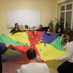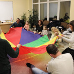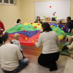 Február 18-án ismét legkisebb vendégeinket vártuk Kiugrott a gombóc nevet viselő foglalkozásunkra, akik vidám délutánt tölthettek együtt épületünkben. Énekszóval kezdődött a móka, majd mondókák következtek. Madárkák hangja töltötte be a levegőt a gyerekek nagy örömére, majd furulyaszó csendült vidáman. Cirókázók, lovagoltatók, höcögtetők nevettették meg a kicsiket, ezután pedig előkerült a tarka ejtőernyő meg a sok labda, amit vígan kergettek, gyűjtöttek az apróságok. Várunk mindenkit egy újabb jókedvű délután erejéig legközelebb is!