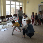 Kézen Fogva – Fejlesztőkuckó foglalkozásunk újabb alkalmára került sor március 1-jén, szombaton. Ez a délelőtt is bővelkedett érdekesebbnél érdekesebb, vidám feladatokban. A bevezető beszélgetés után egymást követték azok a gyakorlatok, amelyek a nagymotoros mozgást, a téri tájékozódást, a jobb-bal oldali differenciálást voltak hivatottak fejleszteni. Az egyensúlyérzéket fejlesztő mozgásformák is helyet kaptak a foglalkozáson, a délelőttöt pedig kézműves foglalkozással zárták a gyerekek.