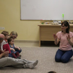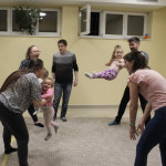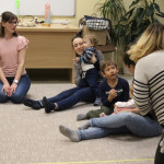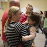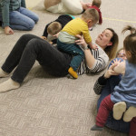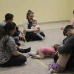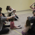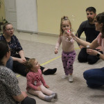 Jókedvű kisgyermekek és szüleik múlatták az időt együtt szerda délután a Kiugrott a gombóc elnevezésű foglalkozásunkon. Vidáman szálltak a tarka buborékok, majd felcsendültek a tavaszcsalogató dalocskák is. Ezután egymást követték a höcögtető, döcögtető, lovagoltató, lógáztató mondókák és rigmusok, mosolyt csalva kis vendégeink arcára. Ezúttal sem maradt el a tánc, és a gombócok is kiugrottak a fazékból. Várunk mindenkit egy víg délutánra jövő héten is!