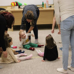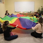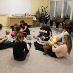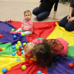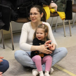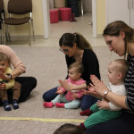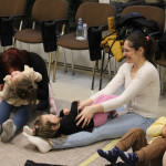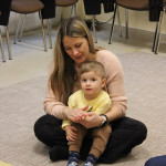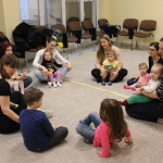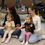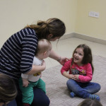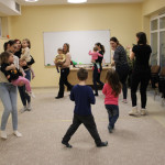 Víg énekszóval kezdték a résztvevők a keddi Kiugrott a gombóc foglalkozást. Jó hangulatban folytatták a mókát, dalocskák, mondókák követték egymást, majd előkerültek a höcögtetők, döcögtetők, lovagoltatók, tapsoltatók. A színes labdák, mint minden alkalommal, újra nagy mosolyt varázsoltak kis vendégeink arcára, miközben kiugrasztották a gombócokat a fazékból. A lógáztatók is nagy sikert arattak, így babák és szüleik vidáman térhettek haza.