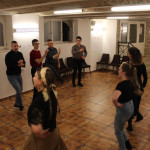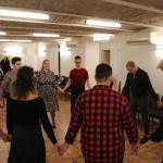 Kardok, csákók, kokárdák, nagyszerű zenekar és ügyes táncosok – minden adott volt csütörtök este, hogy egy fergeteges hangulatú műhelymunkával méltóképpen megemlékezzünk a március 15-i eseményekről. Az igazságtalan császárról és a márciusi ifjakról szóló történetet Juhász Gábor osztotta meg a gyerekekkel. A kézműves foglalkozáson kokárdákat, valamint keszkenőket díszítettek az ügyes kezű kislányok, mindeközben a legények a kardjaik segítségével tették próbára erejüket. Szakál Nikolett és Szakács Tamás közreműködésével az ünnephez kapcsolódó népi játékokkal, majd ezt követően csallóközi polgári táncokkal is megismerkedhettek a jelenlevők. A családi táncházat követően a felnőtteké volt a főszerep a 20 órakor kezdődő mulatságon, rábaközi és györgyfalvi táncokat gyakorolhattak az érdeklődők. Köszönjük, hogy velünk tartottak! Sok szeretettel várunk vissza mindenkit májusban is!
