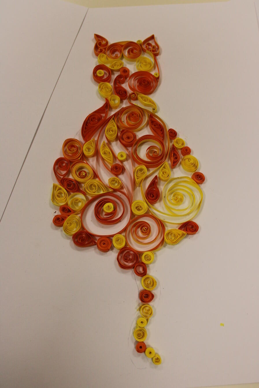 A quillingszakkör tagjai hétfőn is kitettek magukért, ami az ügyességet és a szorgalmat illeti. Ezen a délutánon macskát ábrázoló képet alkottak a csoporttagok, minden tudásukat és tehetségüket bevetve. A már ismert elemek mellé újak is kerültek, a foglalkozás végére pedig meg is születtek a tematikában azonos, ám színben és formában, valamint motívumokban változatos, szebbnél szebb munkák, amelyek ezúttal is szakköröseink tudását dicsérik.