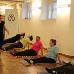 Egészséges gerinctréning elnevezésű foglalkozásunk hétfői alkalmára ezúttal is szép számban gyűltek össze a csoporttagok, hogy újra együtt töltsenek egy órát, és mozgással tegyenek fizikai állóképességükért, gerincük egészségéért. A bemelegítő gyakorlatok után egymást követték azok a tornasorok, amelyek a gerinc melleti mélyizmokat, illetve az egész test izomzatát, ízületrendszerét hivatottak átmozgatni annak érdekében, hogy a mindennapi élet fizikai tevékenységei minél kevesebb kényelmetlenséggel, fájdalommal járjanak. Az edzés abban is sokat segített a résztvevőknek, hogy testtartásuk nagymértékben javuljon, ezáltal csökkentse az ízületek felesleges és nem megfelelő terhelését.