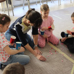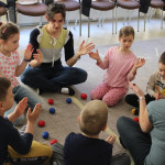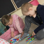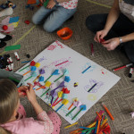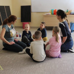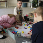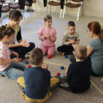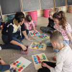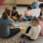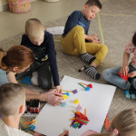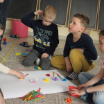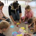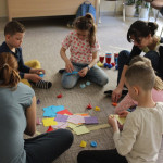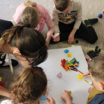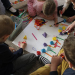 Kézen Fogva – Fejlesztőkuckó foglalkozásunk szombaton is számtalan érdekes, vidám feladattal várta az érdeklődő gyermekeket. Beszédgyakorlattal indult a délelőtt, majd ügyességi és egyensúlygyakorlatok egész sora következett. Ehhez kapcsolódott a téri tájékozódás fejlesztése is. Ezen a foglalkozáson nagy hangsúlyt kaptak a finommotorikát fejlesztő gyakorlatok, amelyek egyikének eredménye egy gyönyörű, tavaszi virágos rétet ábrázoló közös alkotás lett. Ma sem maradtak el a grafomotoros készségeket fejlesztő feladatok, amelyeknek a hamarosan iskolába induló kis résztvevők nagy hasznát veszik majd.
