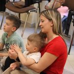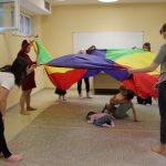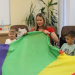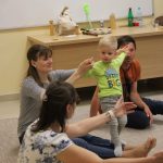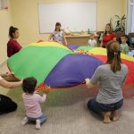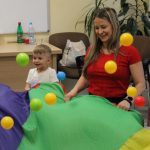 Vidám délutánt tölthettek el együtt ismét azok, akik április 23-án ellátogattak a Szekeres László Alapítványba, hiszen újra várta őket a Kiugrott a gombóc foglalkozás. Bevezetőként a Tavaszi szél vizet áraszt című dal csendült fel, majd a közös éneklés után kezdődhetett is a móka: egymást követték a höcögtetők, döcögtetők, és a többi, a kicsik által kedvelt mondókás-mozgásos játék. A Napocskát is előcsalogatták az ejtőernyő segítségével, majd gombócokat ugrasztottak babák és kísérőik. Dallal zárult ez a foglalkozás is, amely után ki-ki jó hangulatban térhetett haza.