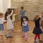 Hétfői táncpróbánk a húsvéti élmények megosztásával kezdődött. Ezt követően a régi kedvenc gyűrűs játék került középpontba. Mint azt már korábban elárultuk, elkezdtük a felkészülést az évzáró műsorunkra. A foglalkozás második felében a libás dalokat, játékokat és mondókákat játszottuk el, majd a próba legvégén bevontuk a szülőket is egy közös táncolásba.