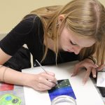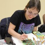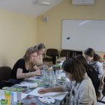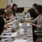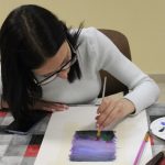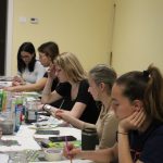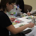 Zsuzsanna vezetésével a mai találkozó alkalmával a résztvevők egy új technikával ismerkedtek meg. Virágos tájképek készültek a Színezd újra! nevet viselő képzőművészeti foglalkozáson egy kicsit más formában, mint amit megszokhattak. Alapként készítettek egy négyzet alakú sablont, az elvárás pedig az volt, hogy a virágok 3D-ben kiemelkedjenek a formából. A feladatot nagyon ügyesen megoldották, igazán látványos alkotások készültek.