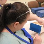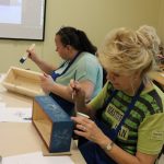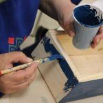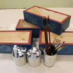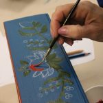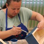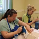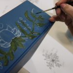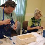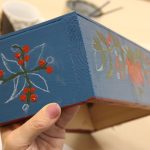 Bútorfestőink ezen a szerdán sajnos kisebb létszámban, de szokásukhoz híven lelkesen folytatták a múlt alkalommal megkezdett munkát. Mint az előző héten, most is a Békés megyei szlovák dobozon dolgoztak elmélyülten. Az alapozás és a vázlatrajzolás után színkeverés következett, hiszen megkezdődhetett a békési motívumok felfestése az alapdarabra. Jövő alkalommal tovább szépül majd a dobozunk!