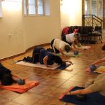 Egészséges gerinctréning elnevezésű foglalkozásunk résztvevői május 5-én is együtt töltötték a délutánt. Az elengedhetetlen bemelegítő gyakorlatsor után következett az edzés, amely során a már jól ismert mozdulatok mellett új gyakorlatok is helyet kaptak. Ez alkalommal a labda szolgált segédeszközül a torna ideje alatt, változatossá téve a tréninget.
