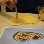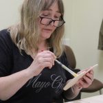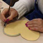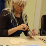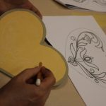 Felvidéki, azon belül is vizesréti motívumok kerültek előtérbe május 21-én az ASzakkör bútorfestő foglalkozásán. Ezen a délutánon névtábla készítésébe kezdtek a szakkörösök. Különleges színek kerültek a munkadarabra csiszolás után. A szív formájú tábla megkapta az alapszínt és a keretet, hogy jövő héten sorra kerülhessenek az adott tájegységre jellemző motívumok.