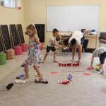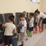 Játszva fejlődtek a gyerekek ezen a szombaton is Kézen Fogva – Fejlesztőkuckó foglalkozásunkon. Rengeteg vidám hangulatú gyakorlat és feladat várt rájuk, többek között ügyességi játékok, ahol a téri tájékozódás, az egyensúlyérzék, a problémamegoldás képessége, a nagymotoros mozgások, illetve a koncentrációs készség egyaránt, észerevétlenül fejlődött. A finom- és a grafomotoros mozgás gyakorlása sem maradt el ezen a délelőttön, mindez jó hangulatban.