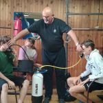július 17-én az Ötkarikás kihívás – avagy sport és kaland egy helyen! elnevezésű nyári kamasztábor negyedik napjára került sor. A délelőtt folyamán a cserkészek világával ismerkedhettek meg a fiatalok Fodor Tamás és Hevesi Nikoletta közbenjárásával. Majd Dr. Námesztovszki Zsolt tartott a fiataloknak egy interaktív előadást, amelynek címe a “Korszerű technológiák a tömeg- és versenysportban – lehetőségek, korlátok és dilemmák” volt. A mesterséges intelligencia és a sport kapcsolata, a versenysportra gyakorolt hatásai nagyon aktuális témák, amelyek az élsportban és a fair play szempontjából is számos kihívást tartogatnak a jövőben. Mindezek után Csajkás Szuzanna okleveles gyógytornász tartott foglalkozást a fiataloknak, amelynek fókuszában a gerinctorna állt. A tornagyakorlatok által a fiatalok dinamikus, nyújtó és mobilizáló mozgástípusokkal is megismerkedhettek. A délutáni közös fagyizás után ellátogattunk a Spartak Búvár Klubhoz is, ahol Pavković Milan és Pavković Nenad várták a fiatalokat. Ezen a foglalkozáson a búvárkodással, mint sportággal ismerkedhettek meg, bemutatásra kerültek a búvárfelszerelés kellékei, szó volt a helyes légzéstechnikákról és a merülés lehetőségeiről is. Majd a megszerzett ismeretek, információk után teljes felszerelésben is kipróbálhatták a búvárkodást, amit mindannyian nagyon élveztek.