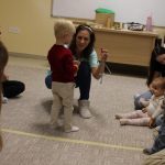 Mondókák, dalocskák, víg hangulat várta kedden is a Kiugrott a gombóc foglalkozásra látogató babákat és szüleiket. Énekszó csendült, hangszerek hangja szállt, majd egymás után következtek a höcögtetők, döcögtetők, lovagoltatók , csiklandozók. Mókás ejtőernyőzésre is sor került ezen a szép délutánon. Jövő kedden is várjuk kis vendégeinket foglalkozásunkra!