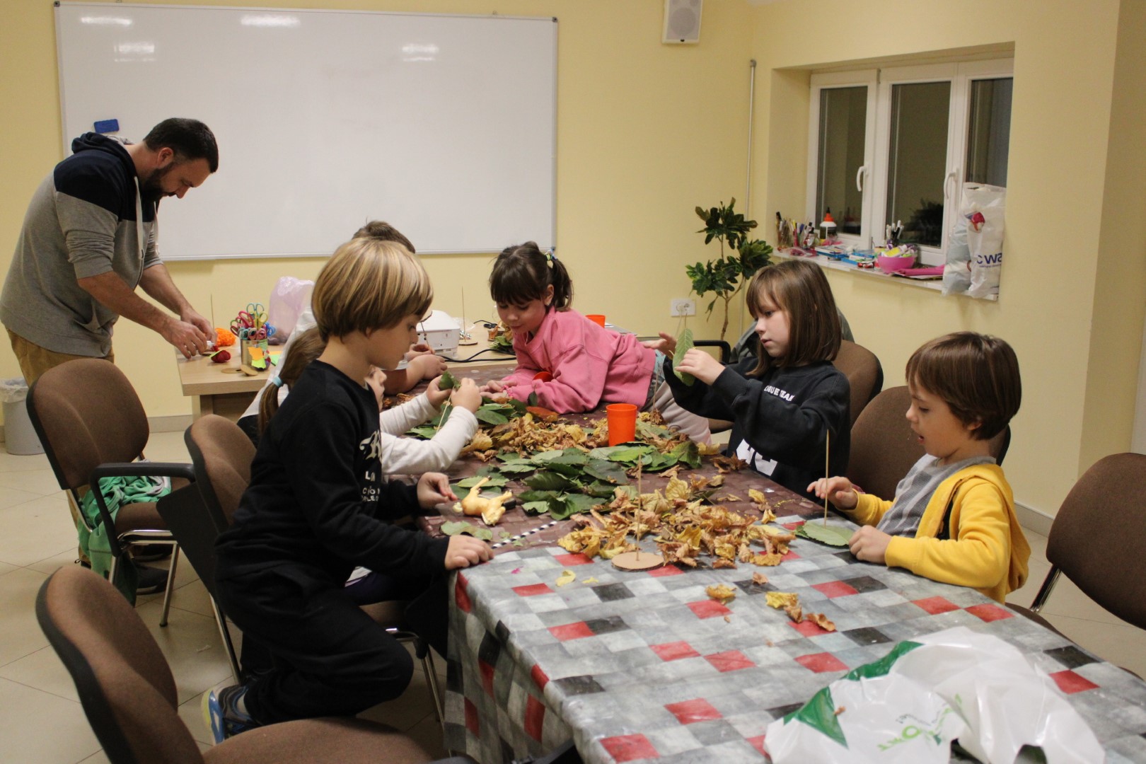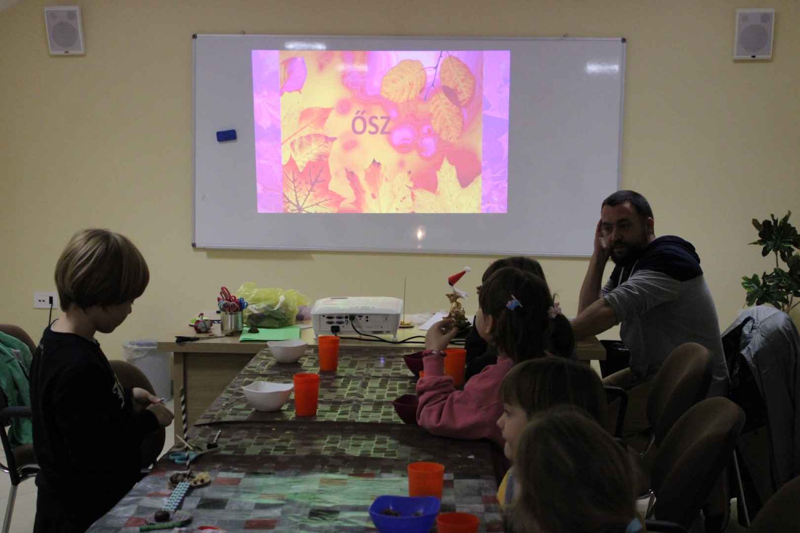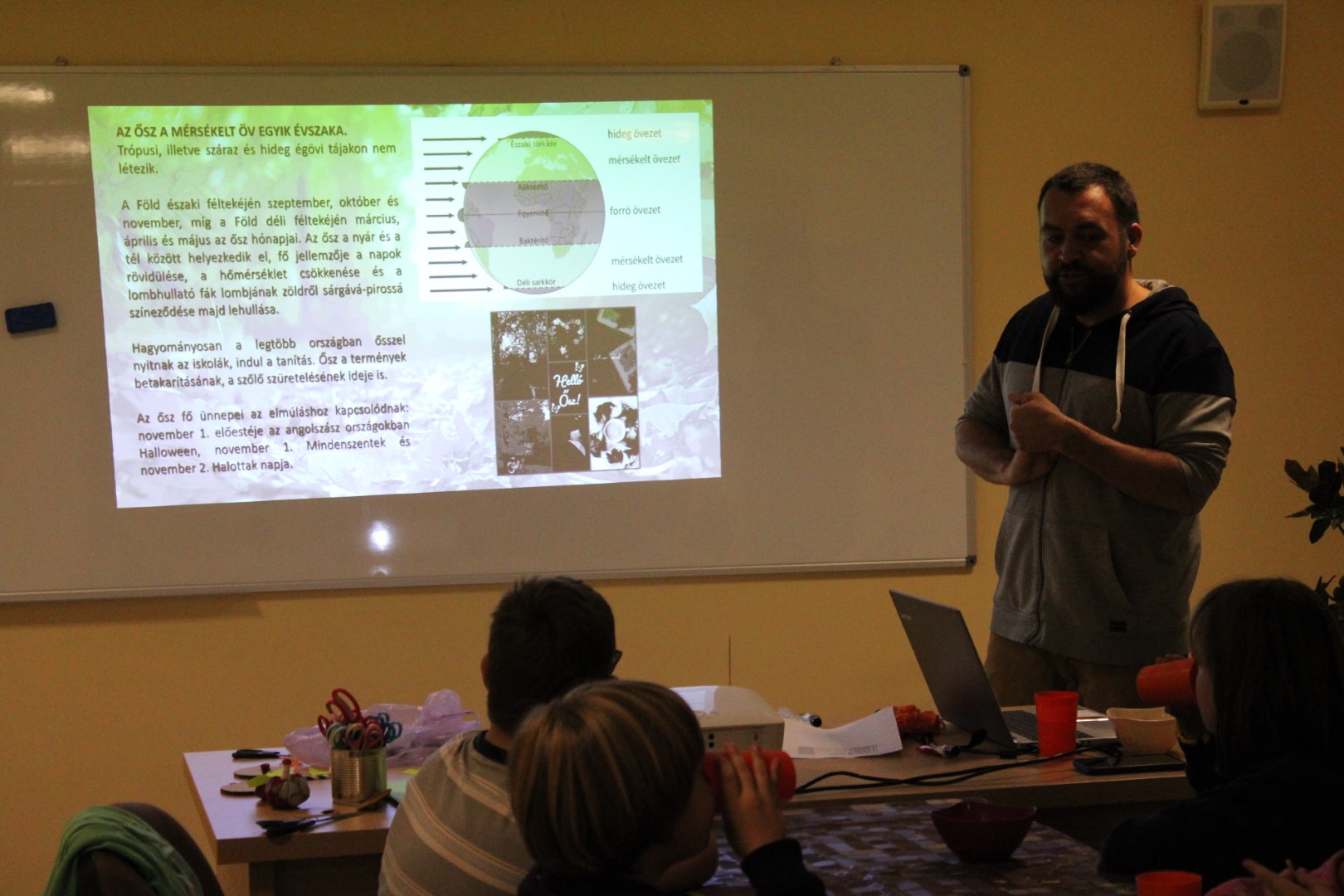 A sokszínű ősz volt a főszereplő szerdai Téged vár az Öko-sarok! elnevezésű foglalkozásunkon. Kreatív kézműveskedéssel kezdődött a délután: a gyerekek tarka falevelek és fényes gesztenyék felhasználásával készítettek bábokat, majd következhetett is a tudásgyarapítás. A téma természetesen az ősz volt. Általános tudnivalók hangzottak el erről a szép évszakról, ezután érdekességek hangzottak el az ősszel kapcsolatban. Jövő szerdán ismét izgalmas téma várja kis környezetvédőinket!