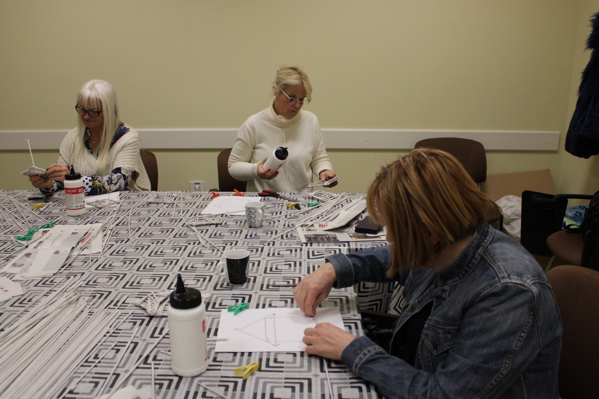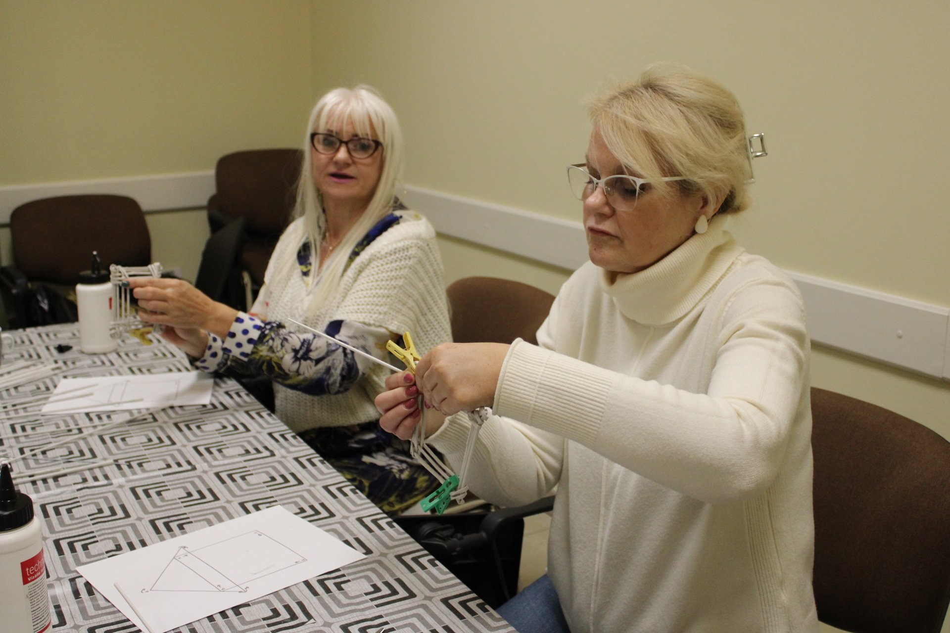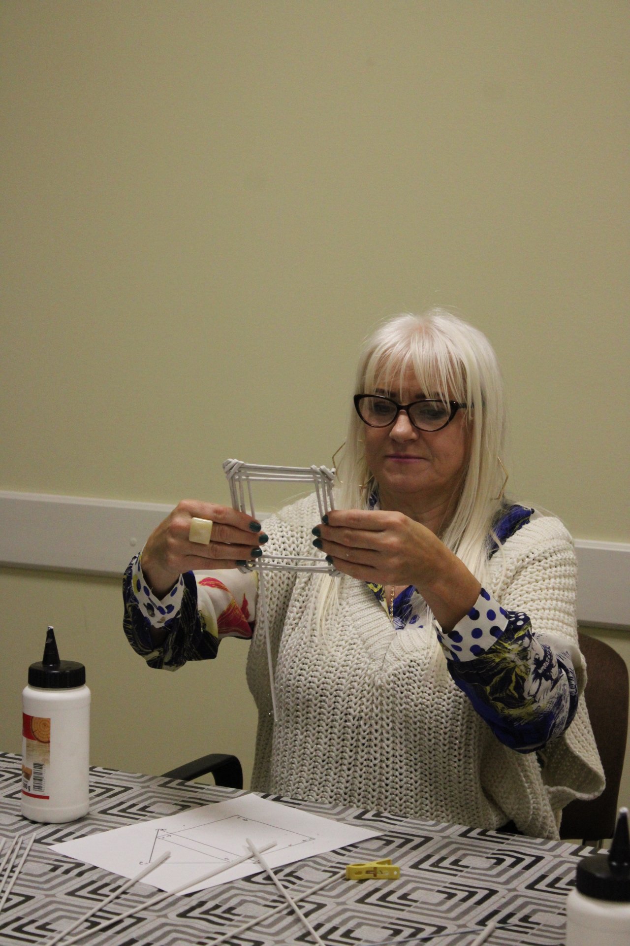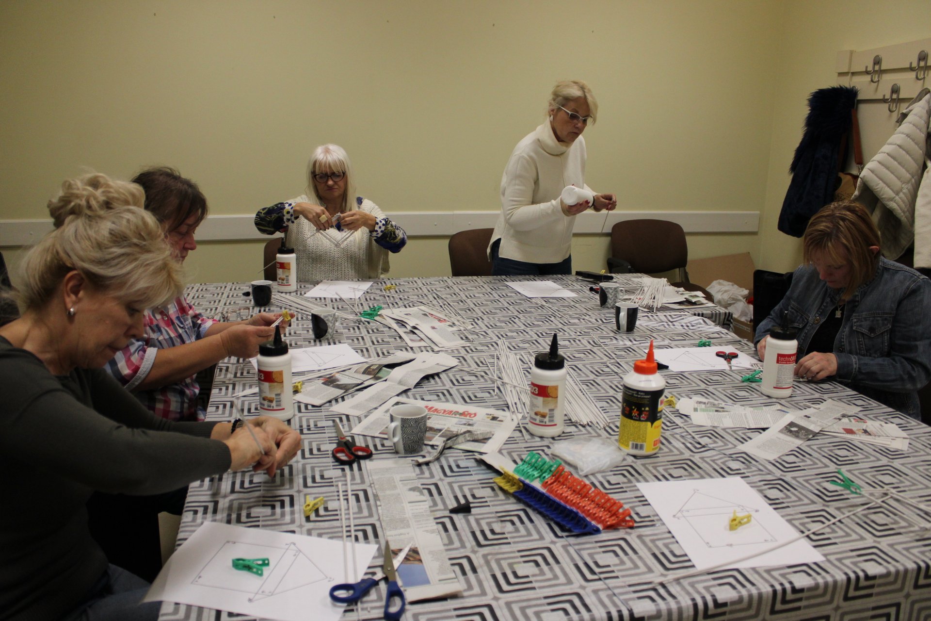 Szorgos munkával töltötték a hétfő délutánt a papírfonó szakkör tagjai. A mai feladat a házikó elkészítése volt, amelyet fehér papírpácák segítségével alkottak meg a résztvevők. Ily módon pillanthattak bele a munkafolyamatba és gyakorolhatták a fonás alapmozdulatait, amelyekre a későbbiekben szükségük lesz. A délután végére szép munkák születtek, örömet szerezve a csoporttagoknak.