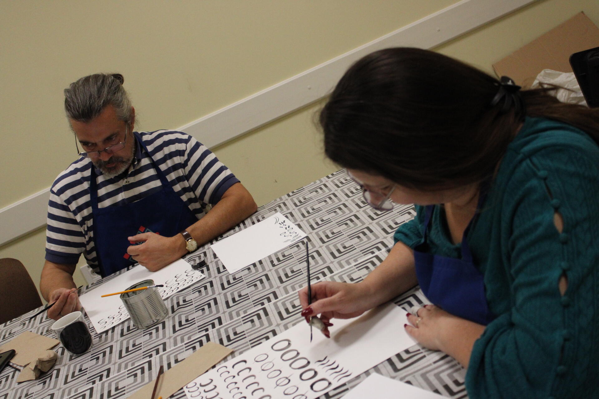 Szerdán bútorfestő szakköri csoportunk szorgoskodott ismét épületünkben. A további munkához elengedhetetlen gyakorlással töltötték el a délutánt a résztvevők. Ezúttal is a bútorfestésben leggyakrabban alkalmazott motívumok festésével foglalatoskodtak, így memorizálva a mozdulatokat, a helyes ecsetkezelést.