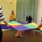 A szomorkás idő ellenére is vidám hangulatban telt a november 4-ei Kiugrott a gombóc baba-mama foglalkozásunk. Ez alkalommal is mókás ölbéli játékokkal vártuk vissza közönségünk legkisebb tagjait, foglalkozásvezetőnk hangszerekkel és közkedvelt dalocskákkal varázsolta szebbé a délutánt. A höcögtetők, lovagoltatók és csiklandozók után előkerült a gyerkőcök nagy kedvence, a sokszínű ejtőernyő. Köszönjük, hogy velünk tartottatok! Legközelebb két hét múlva, november 18-án találkozunk a Szekeres László Alapítványban.