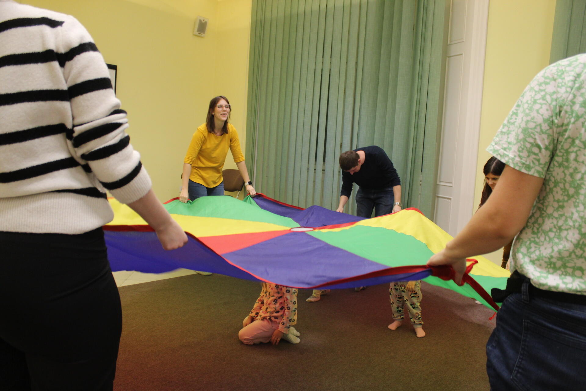 A szomorkás idő ellenére is vidám hangulatban telt a november 4-ei Kiugrott a gombóc baba-mama foglalkozásunk. Ez alkalommal is mókás ölbéli játékokkal vártuk vissza közönségünk legkisebb tagjait, foglalkozásvezetőnk hangszerekkel és közkedvelt dalocskákkal varázsolta szebbé a délutánt. A höcögtetők, lovagoltatók és csiklandozók után előkerült a gyerkőcök nagy kedvence, a sokszínű ejtőernyő. Köszönjük, hogy velünk tartottatok! Legközelebb két hét múlva, november 18-án találkozunk a Szekeres László Alapítványban.