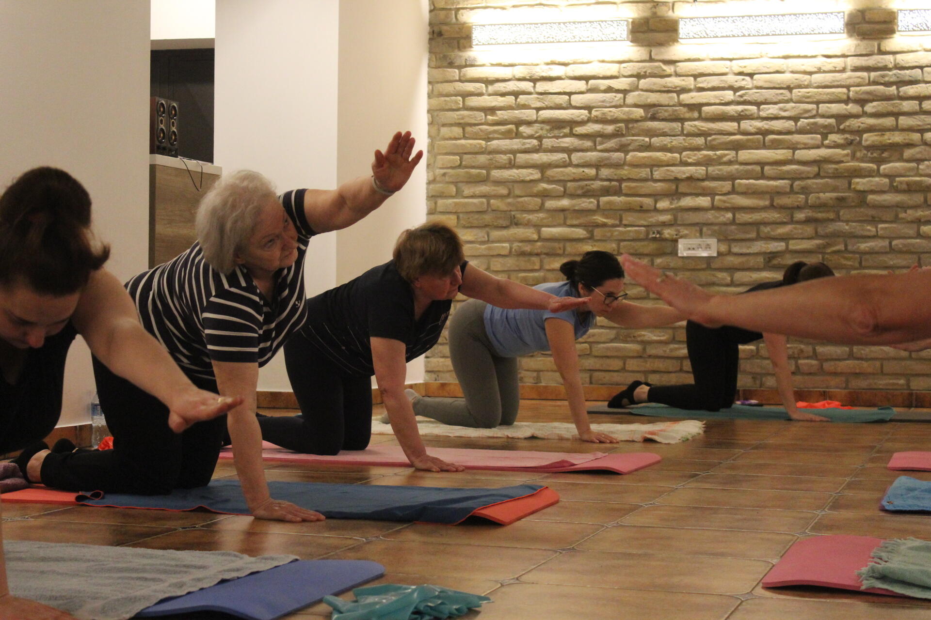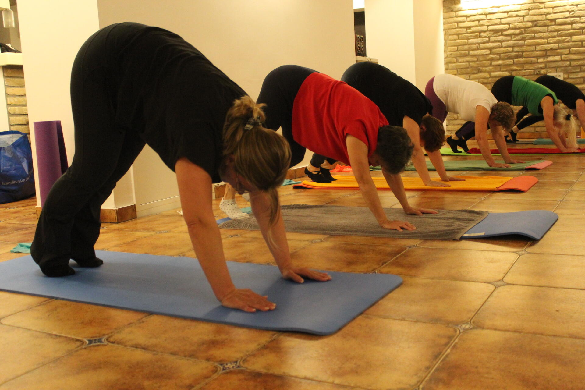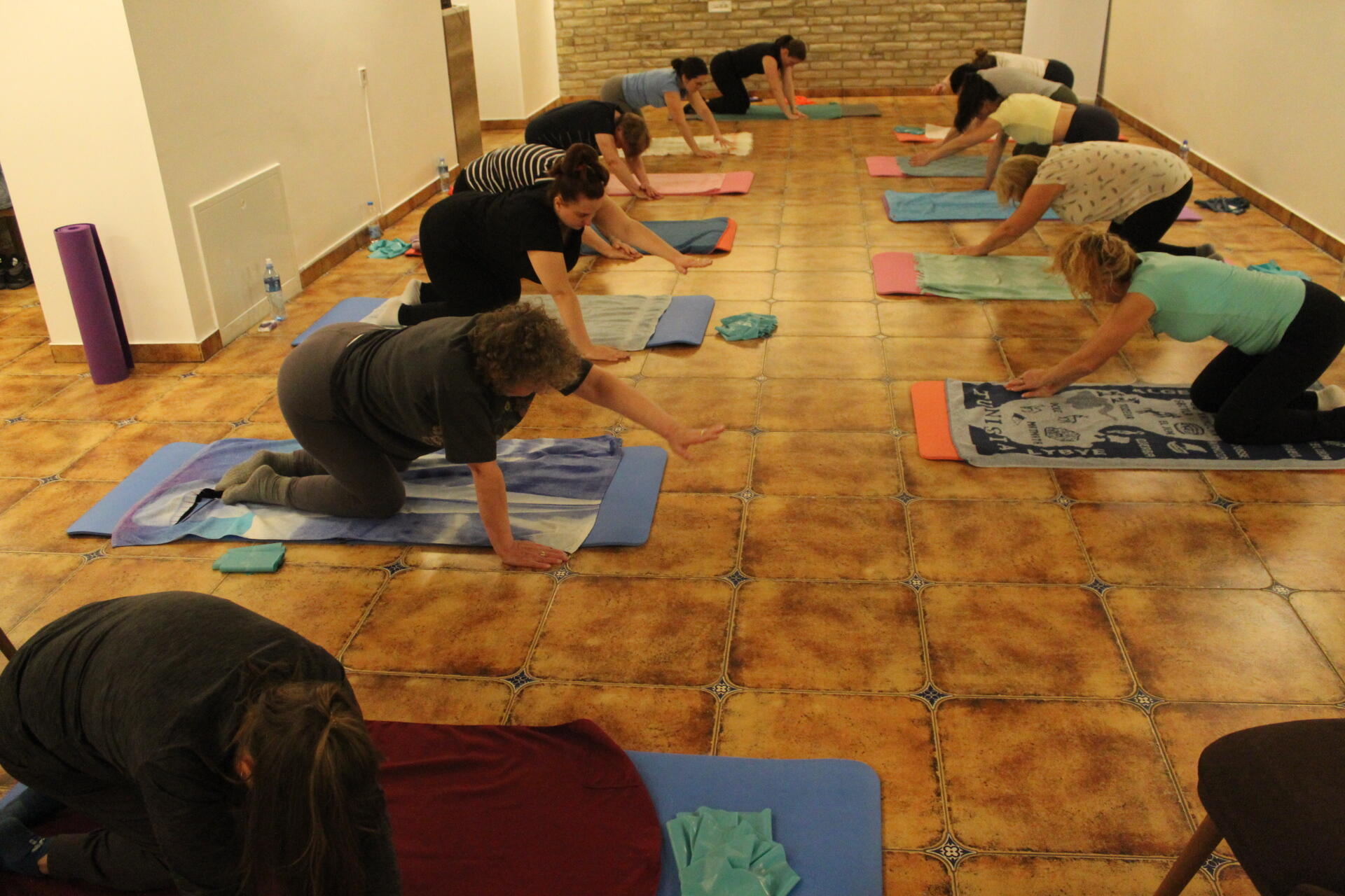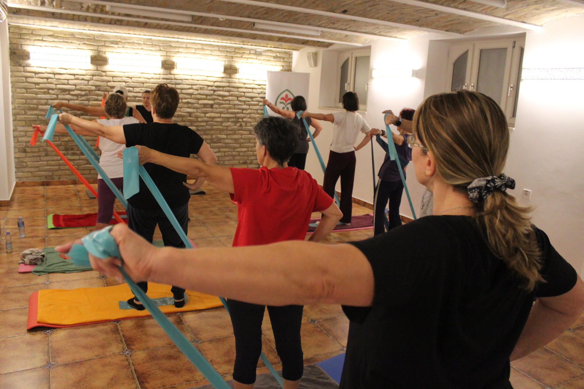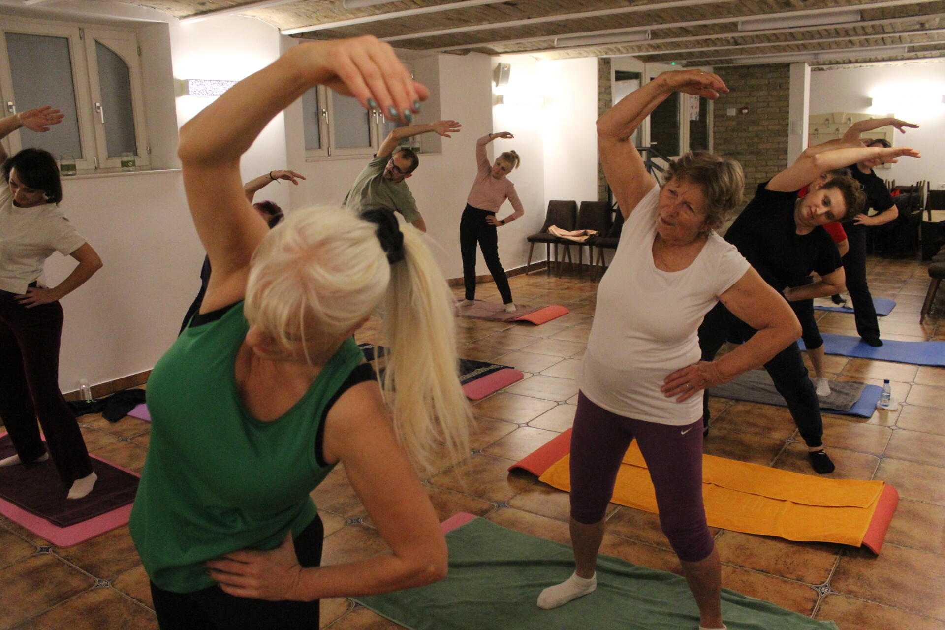 Ezen a héten is ellátogathattak alapítványunkba azok, akik tenni szerettek volna egészségükért, hiszen két időpontban is várta őket az Egészséges gerinctréning nevet viselő foglalkozás. A tartásjavító, izomerősítő, pilates és jóga alapjain nyugvó gyakorlatokat ezúttal is a bemelegítő mozgássorok elvégzése után hajtották végre a résztvevők. A mai alkalommal elasztikus gumiszalagok segítségével tették változatossá a mozdulatokat.