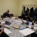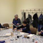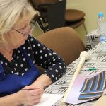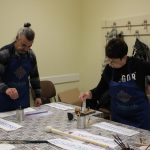 A bútorfestők szakköri csoportja szerdán folytatta a gyakorlást, ami nagy hasznukra lesz majd az elkövetkezőkben. Szegélyminták festésére került sor ezen a délutánon, amelyek a majdani munkadarabokon fognak visszaköszönni. A munkához viszont elengedhetetlen a betűbot használata, amit a szakkörösök a gyakorlást megelőzően el is készítettek maguknak.