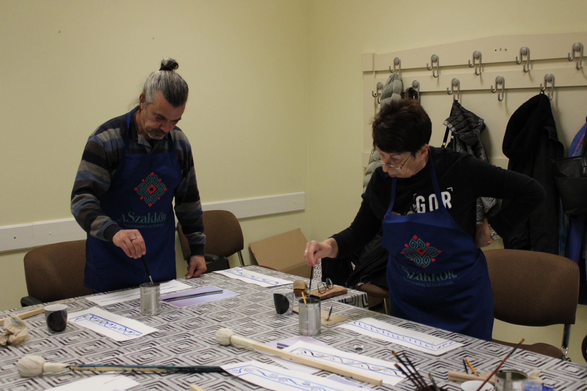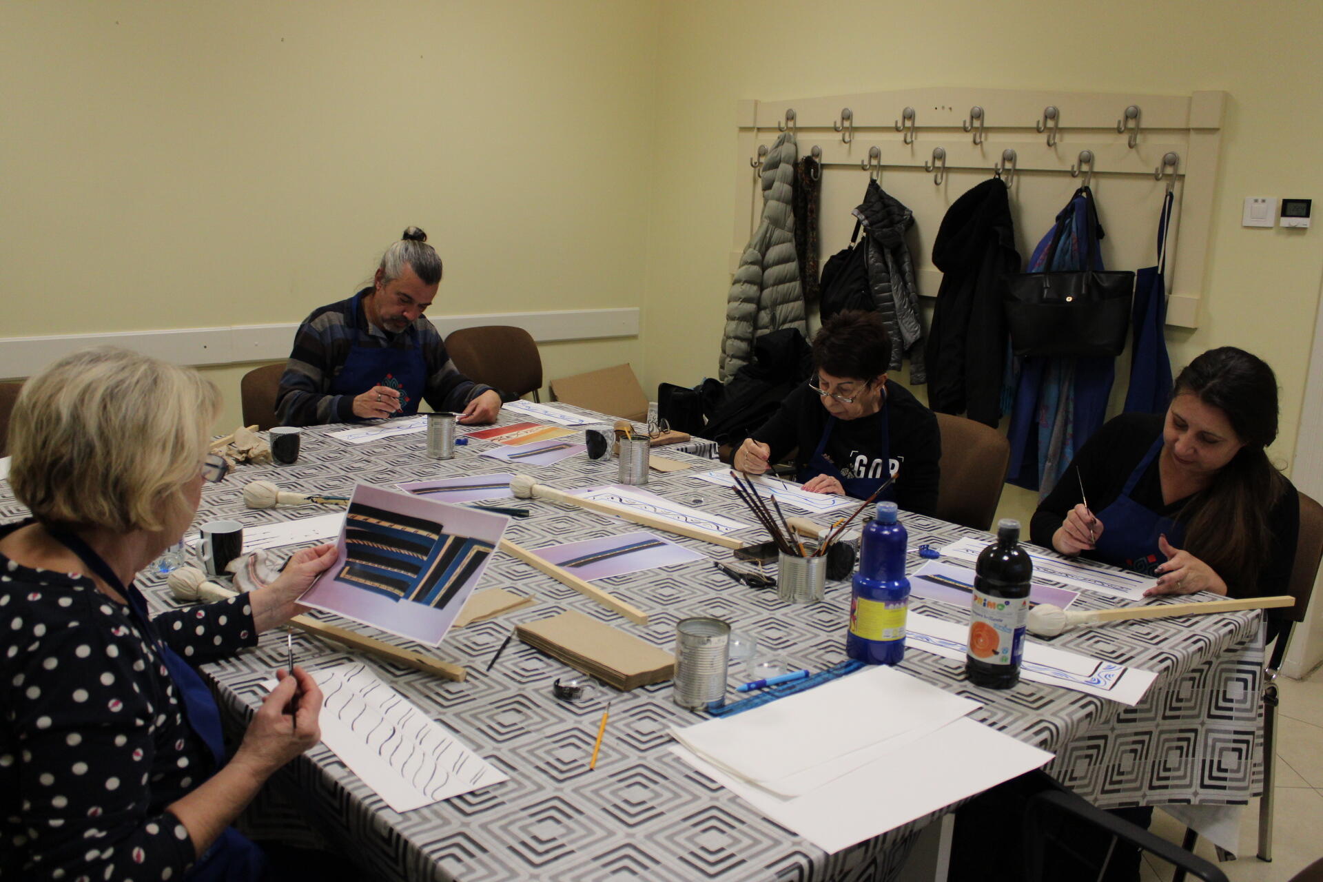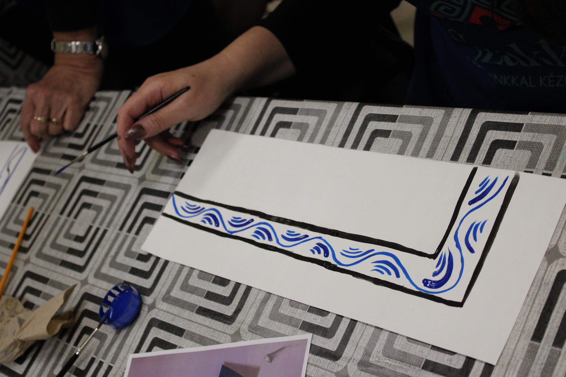 A bútorfestők szakköri csoportja szerdán folytatta a gyakorlást, ami nagy hasznukra lesz majd az elkövetkezőkben. Szegélyminták festésére került sor ezen a délutánon, amelyek a majdani munkadarabokon fognak visszaköszönni. A munkához viszont elengedhetetlen a betűbot használata, amit a szakkörösök a gyakorlást megelőzően el is készítettek maguknak.