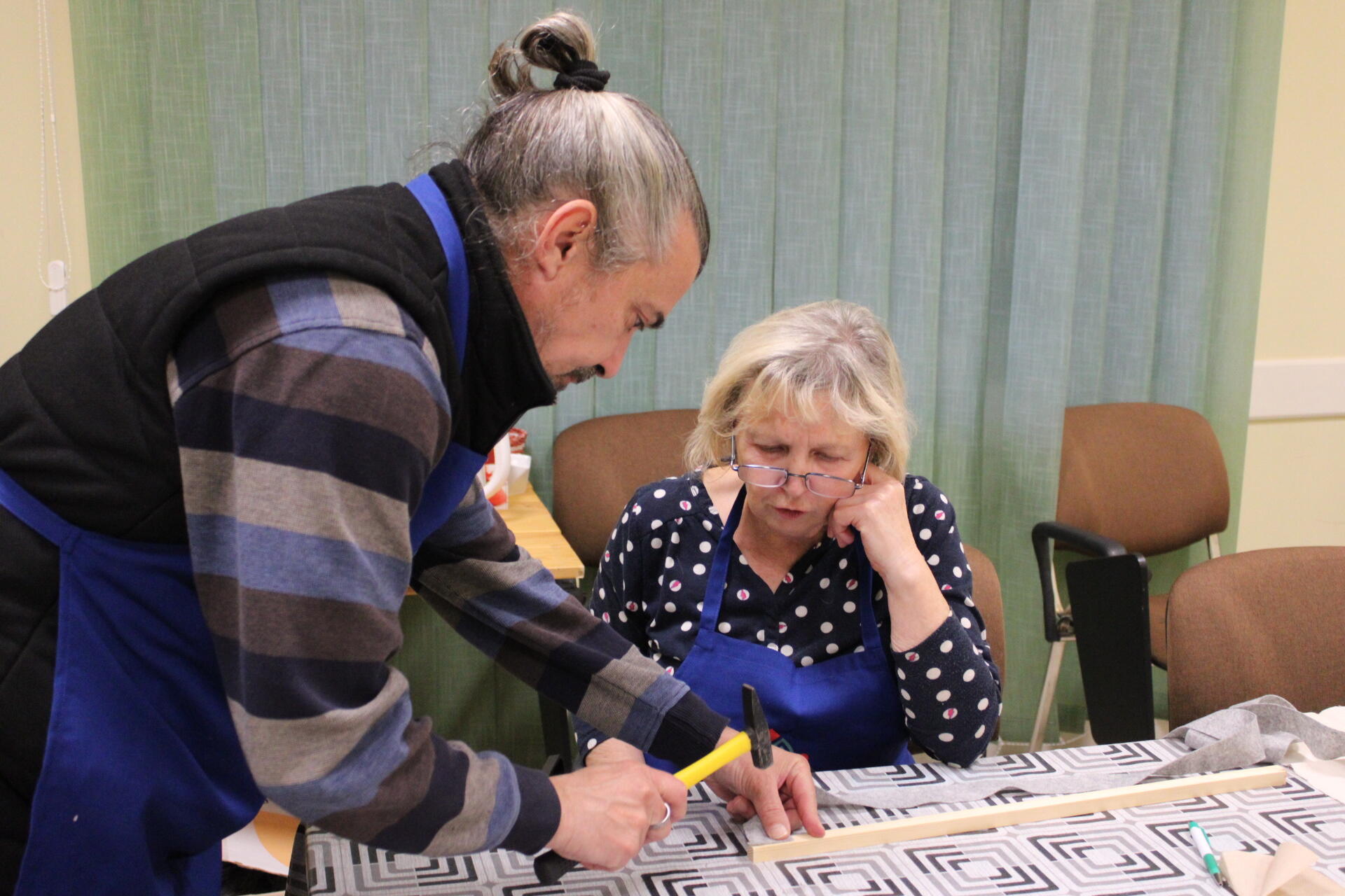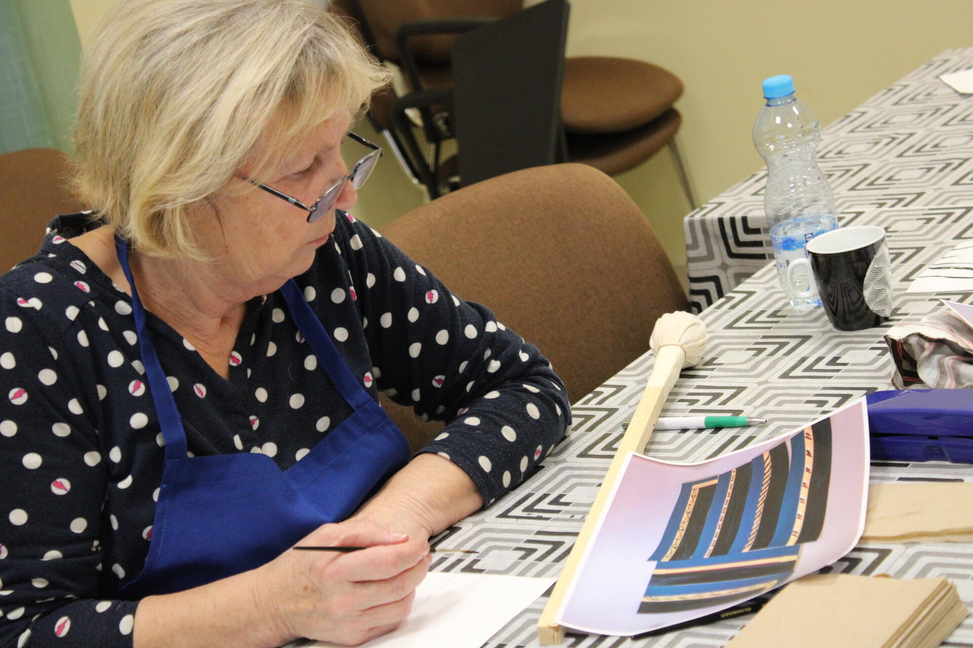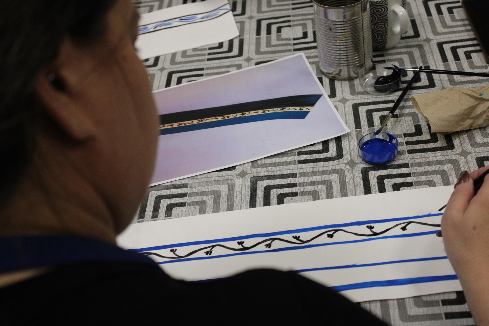 A bútorfestők szakköri csoportja szerdán folytatta a gyakorlást, ami nagy hasznukra lesz majd az elkövetkezőkben. Szegélyminták festésére került sor ezen a délutánon, amelyek a majdani munkadarabokon fognak visszaköszönni. A munkához viszont elengedhetetlen a betűbot használata, amit a szakkörösök a gyakorlást megelőzően el is készítettek maguknak.