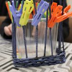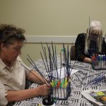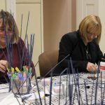 Új szintre léptek hétfőn a papírfonó szakkör tagjai. A soron következő elkészítendő munkadarab, a szögletes tároló megalkotásába kezdtek, amely új fonási technikát igényelt. Ezen a délutánon a dekupázsolással, illetve a kétszálas gyűrűfonással ismerkedtek meg a résztvevők, ennek segítségével dolgoztak ma. A következő alkalommal folytatódik a munka, amikor majd a színváltással is foglalkoznak szakköröseink.