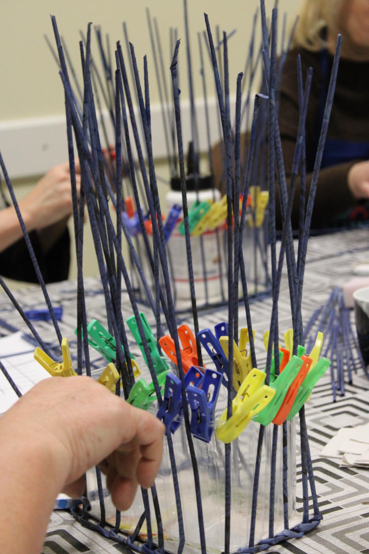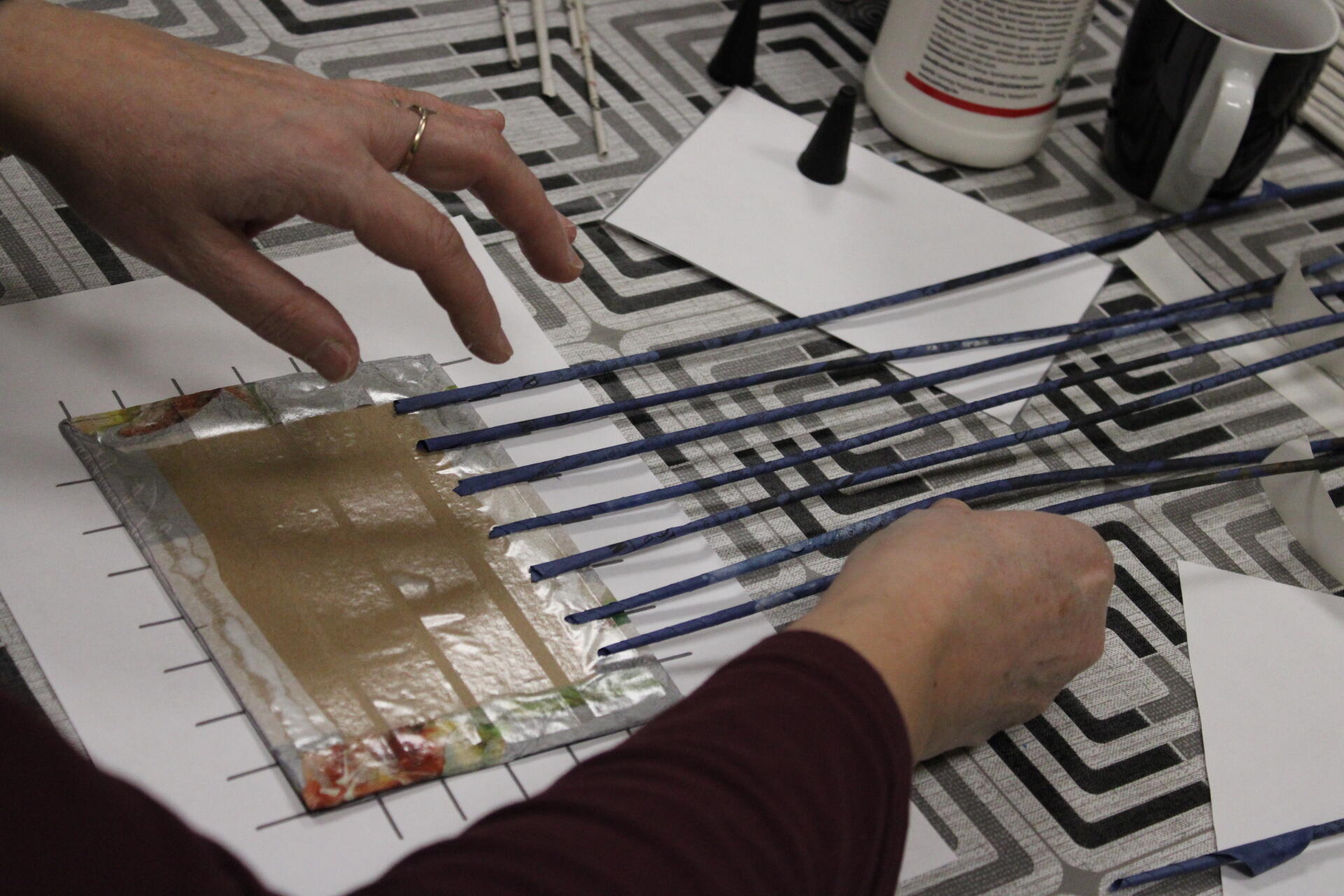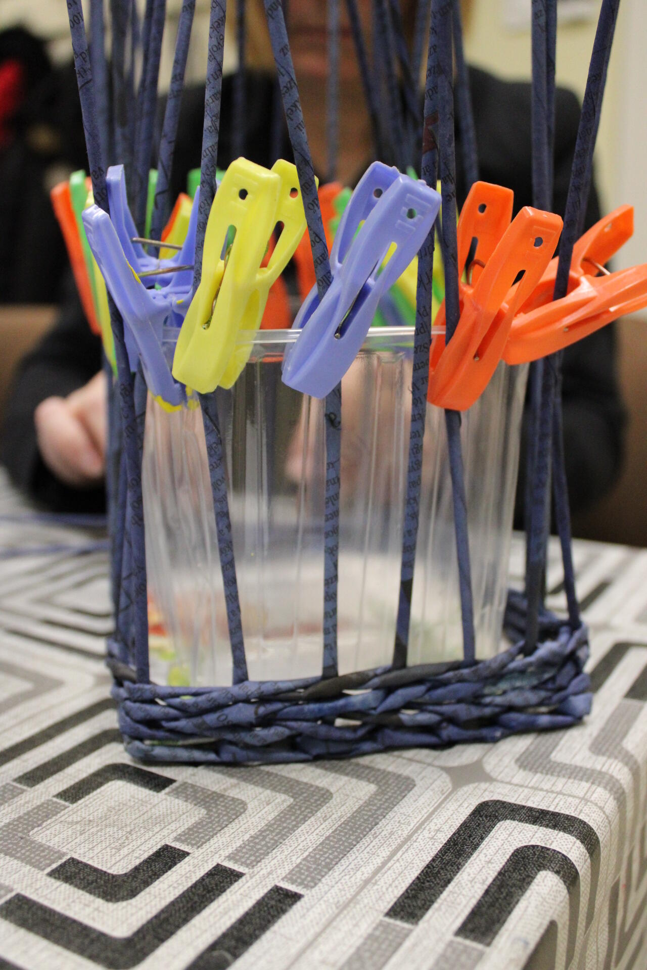 Új szintre léptek hétfőn a papírfonó szakkör tagjai. A soron következő elkészítendő munkadarab, a szögletes tároló megalkotásába kezdtek, amely új fonási technikát igényelt. Ezen a délutánon a dekupázsolással, illetve a kétszálas gyűrűfonással ismerkedtek meg a résztvevők, ennek segítségével dolgoztak ma. A következő alkalommal folytatódik a munka, amikor majd a színváltással is foglalkoznak szakköröseink.