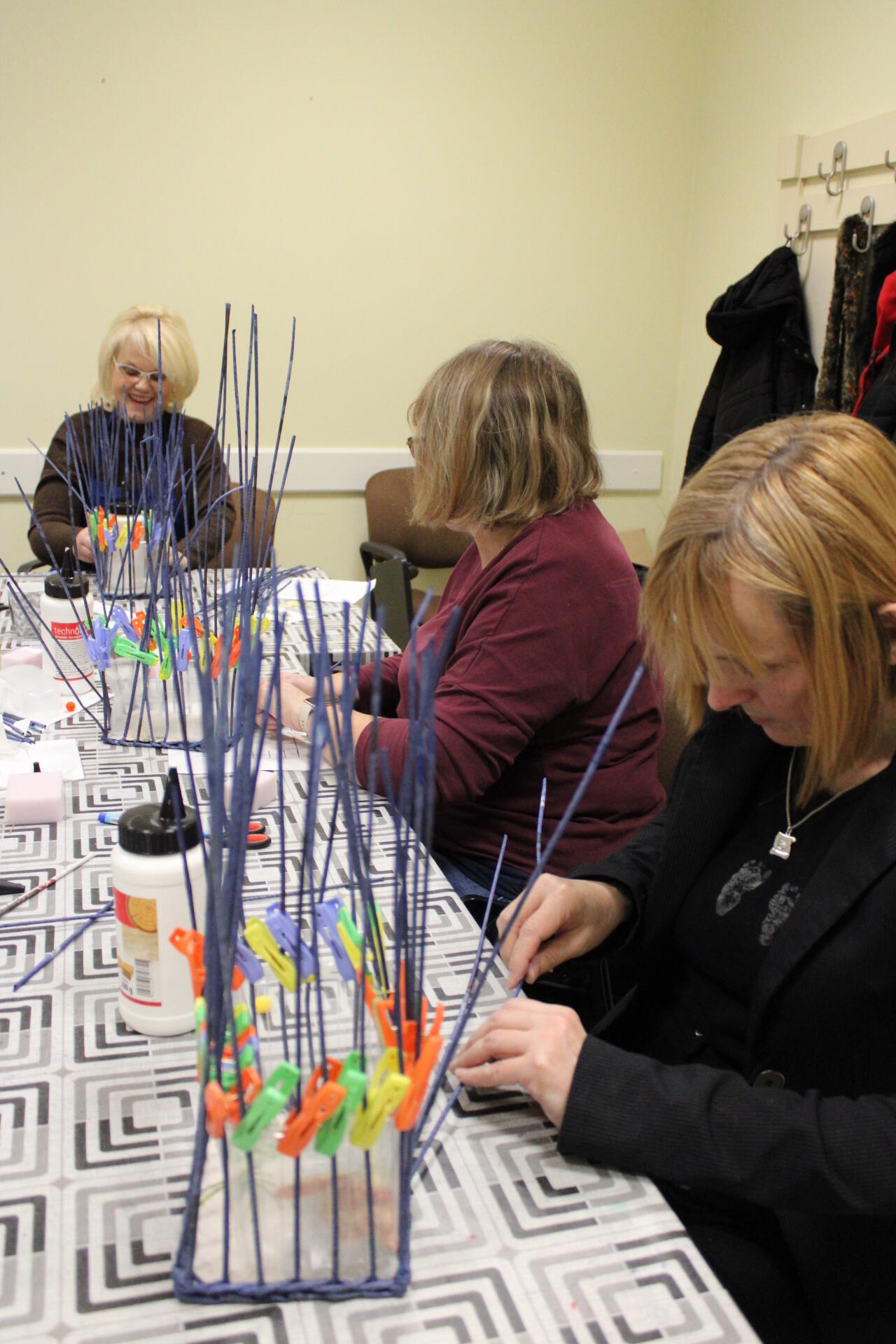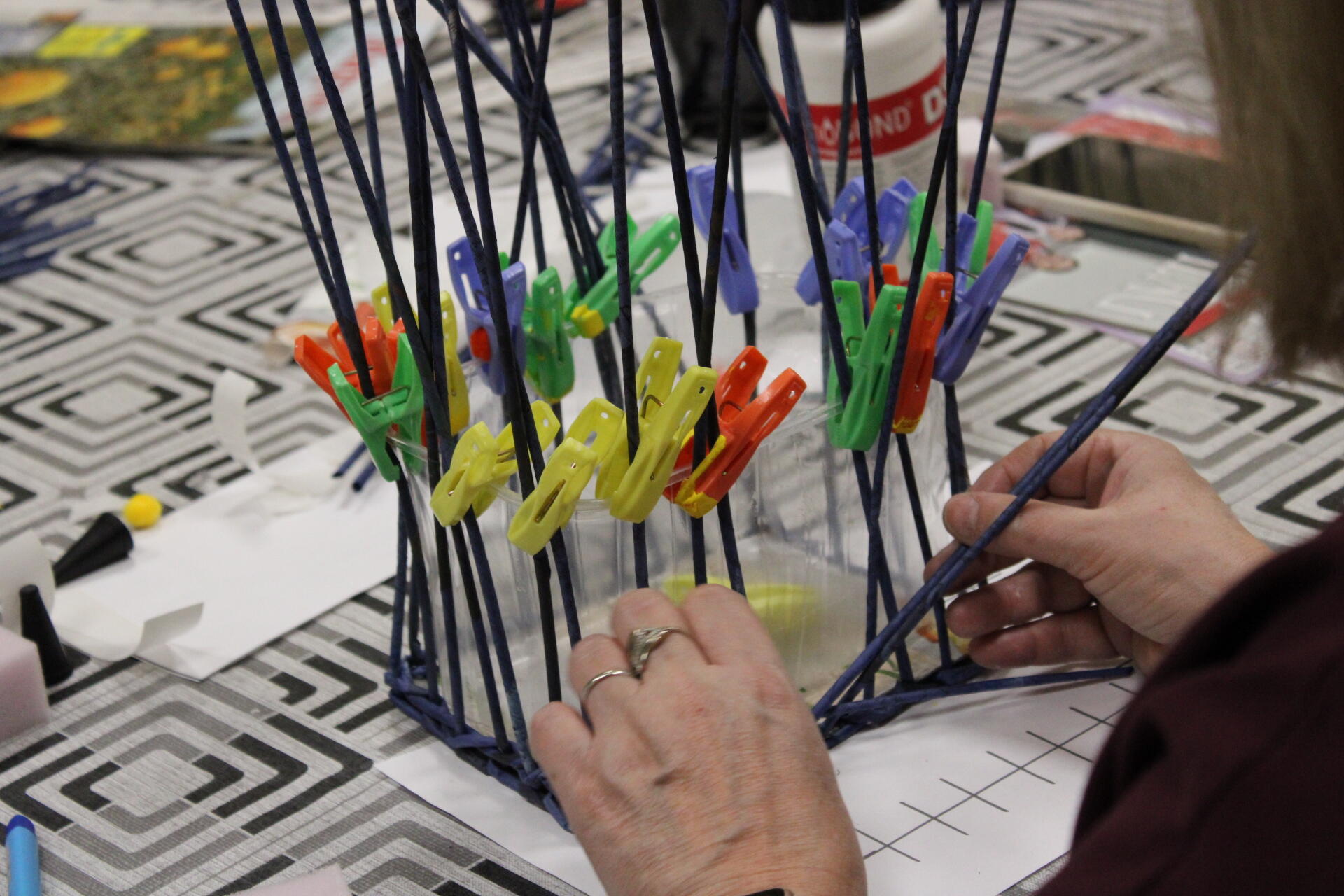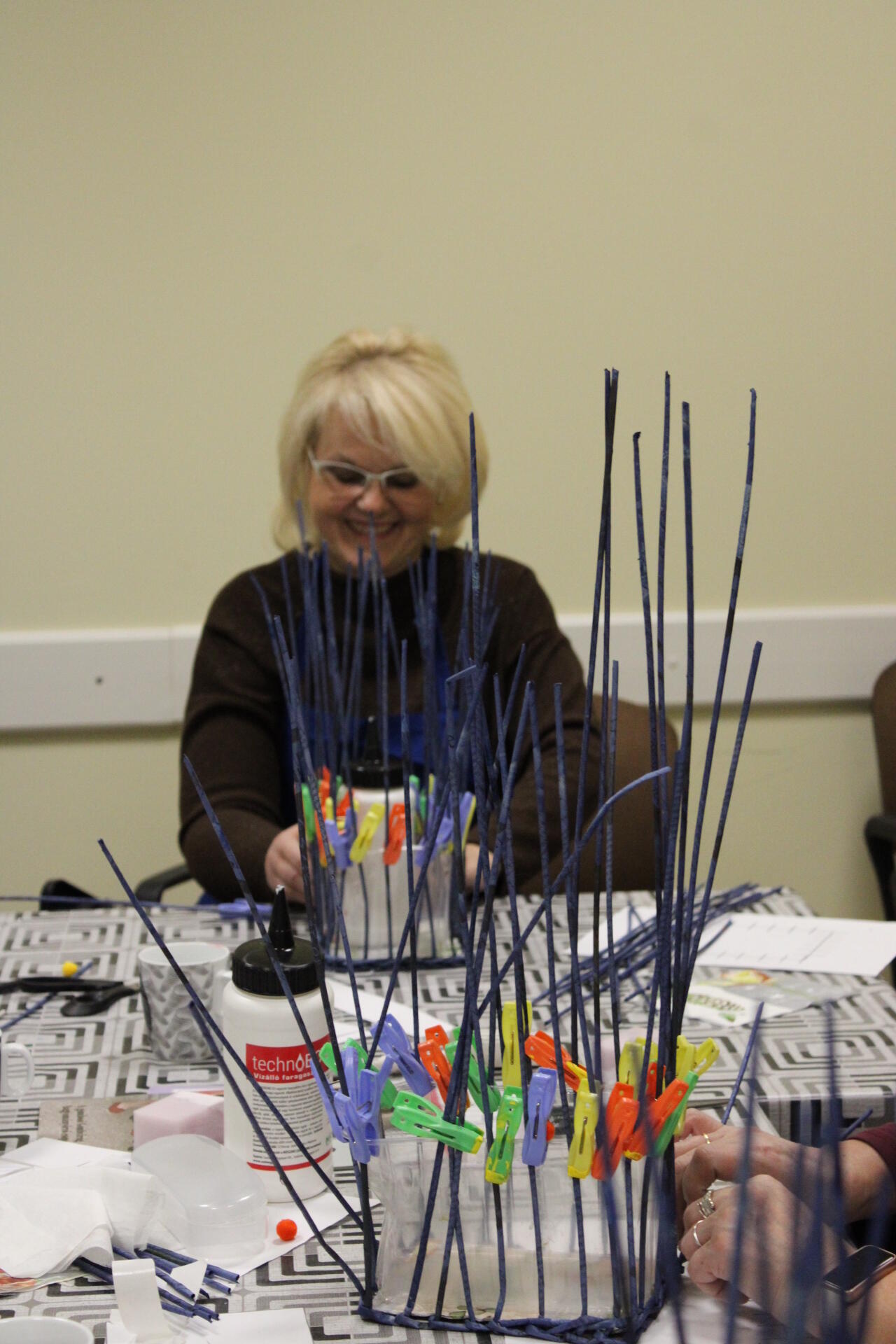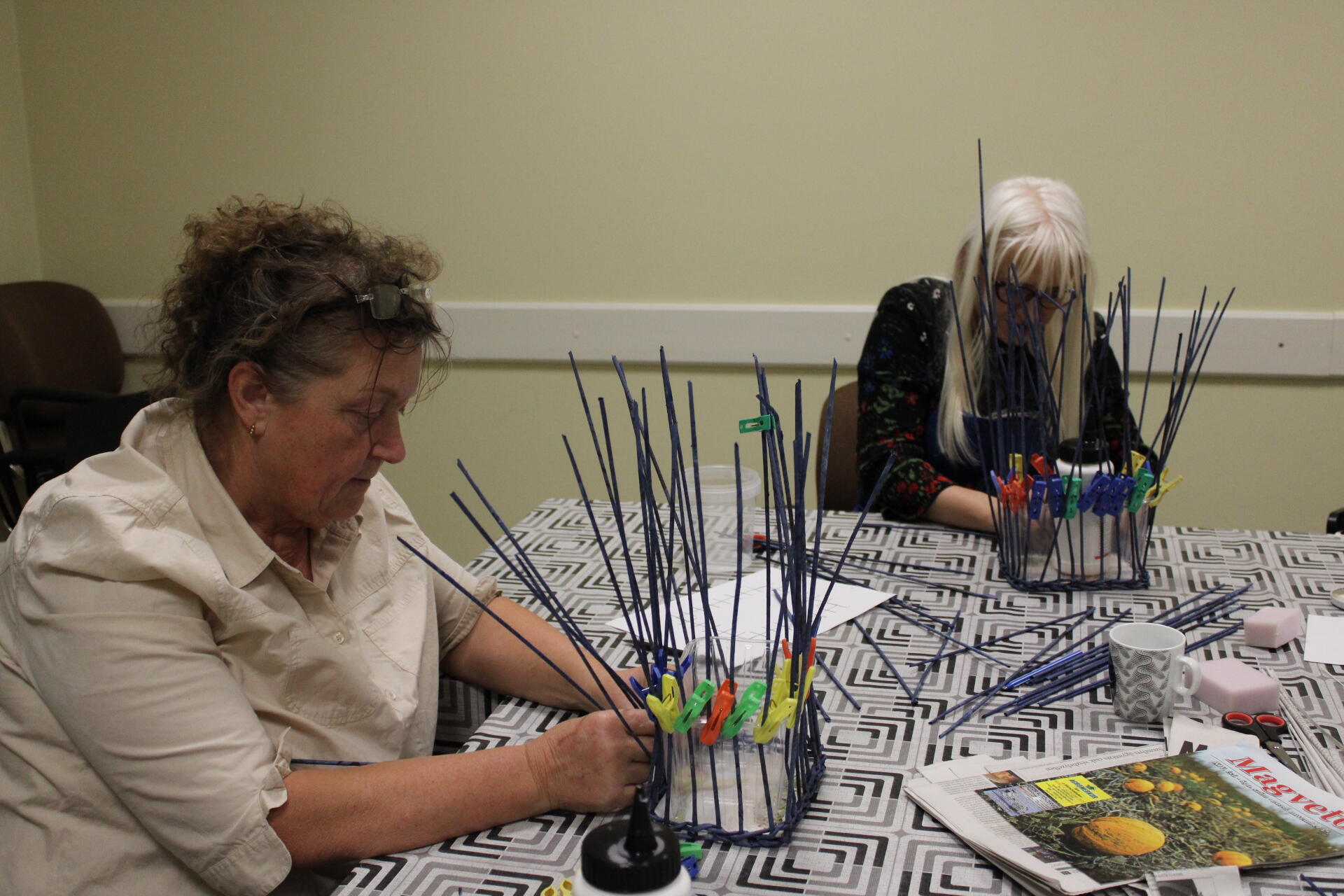 Új szintre léptek hétfőn a papírfonó szakkör tagjai. A soron következő elkészítendő munkadarab, a szögletes tároló megalkotásába kezdtek, amely új fonási technikát igényelt. Ezen a délutánon a dekupázsolással, illetve a kétszálas gyűrűfonással ismerkedtek meg a résztvevők, ennek segítségével dolgoztak ma. A következő alkalommal folytatódik a munka, amikor majd a színváltással is foglalkoznak szakköröseink.