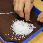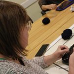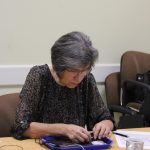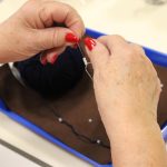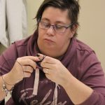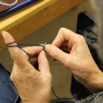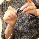 A könyvjelző sikeres befejezése után új munkába vágtak bele szorgos gyöngykötőink. A gyöngyök sokaságának felfűzését követően egy, ma már ritkán használt, de igen praktikus kiegészítő, az érmelegítő készítésére került sor. A kezdősor megkötése után indulhatott is a mintalap alapján a motívum munkadarabba való beillesztése. Jövő héten folytatjuk!